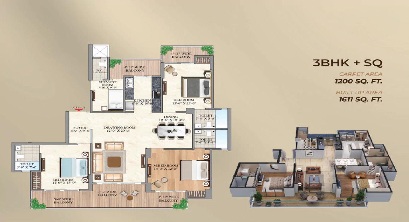 Carpet Area: 1200 - 2364.85 sq.ft. (111.484 - 219.702 sq.mt.)
