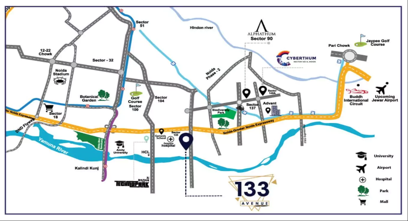 Prime Sector 133 Location: Strategically positioned on Noida Expressway with strong connectivity