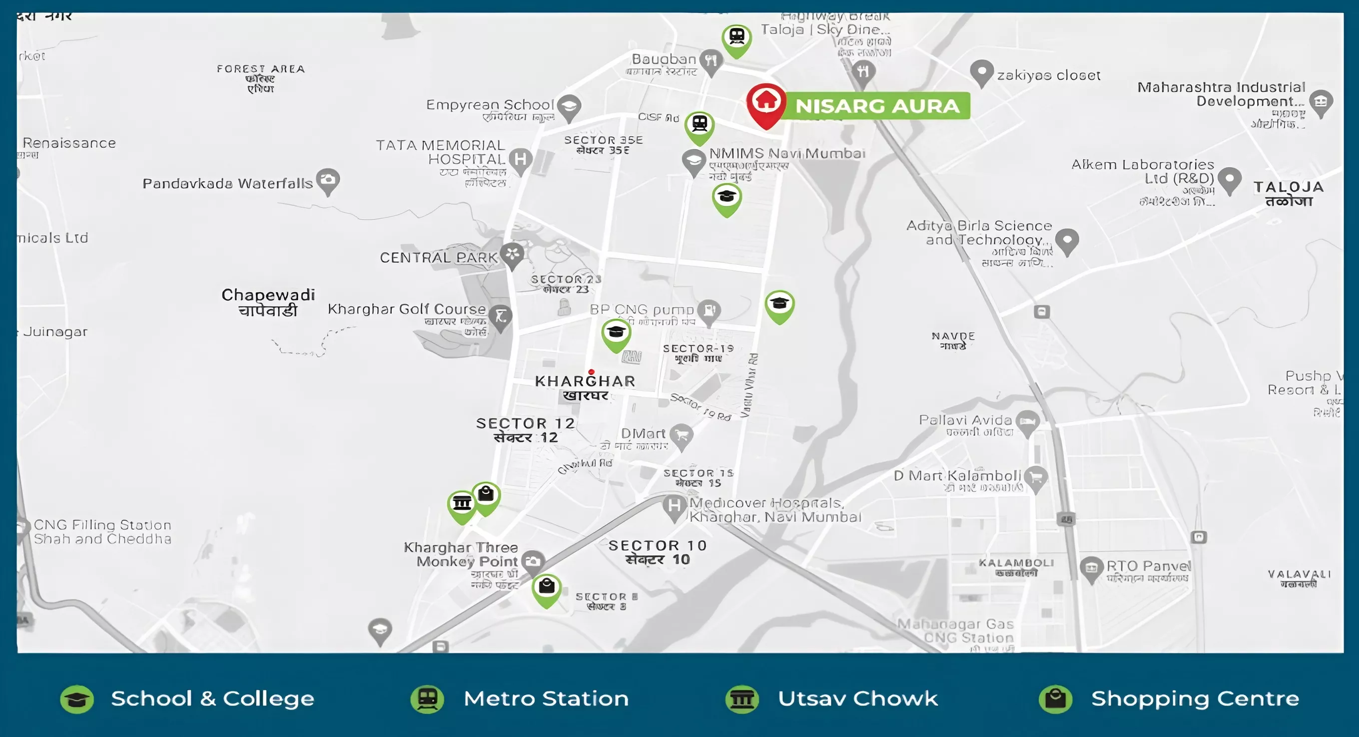 TPV Nisarg Aura, one of the new residential properties of a well-known real estate developer, i.e., TPV Vishwakarma Group in Kharghar, Navi Mumbai.1 & 2 BHK Flats/Apartments for sale are available at good prices. TPV Nisarg Aura launch date is April 2023, and TPV Nisarg Aura Possession will be start from Dec 2026 as per the RERA site.